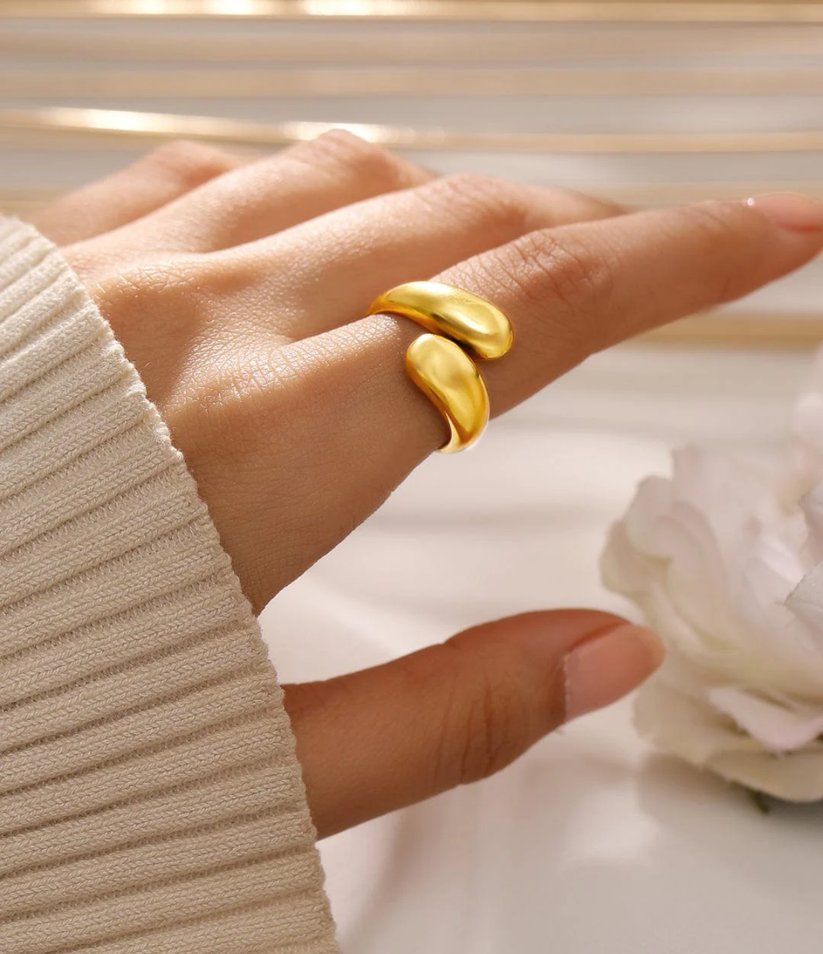 Fierce elegance with a twist. The Snake Wrap Ring coils gracefully around your finger, embodying power, transformation, and mystique. Crafted with intricate detailing and a sleek, sculptural silhouette, this striking piece adds an edgy, symbolic touch to any look. Perfect for stacking or wearing solo as a bold statement—this ring is made to mesmerize.